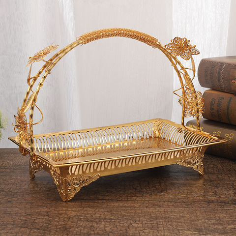 Châu Âu Sang Trọng Hình Chữ Nhật Kim Loại Sắt Vàng Khay Đa-Chức Năng Vàng Trái Cây Lưu Trữ Giỏ